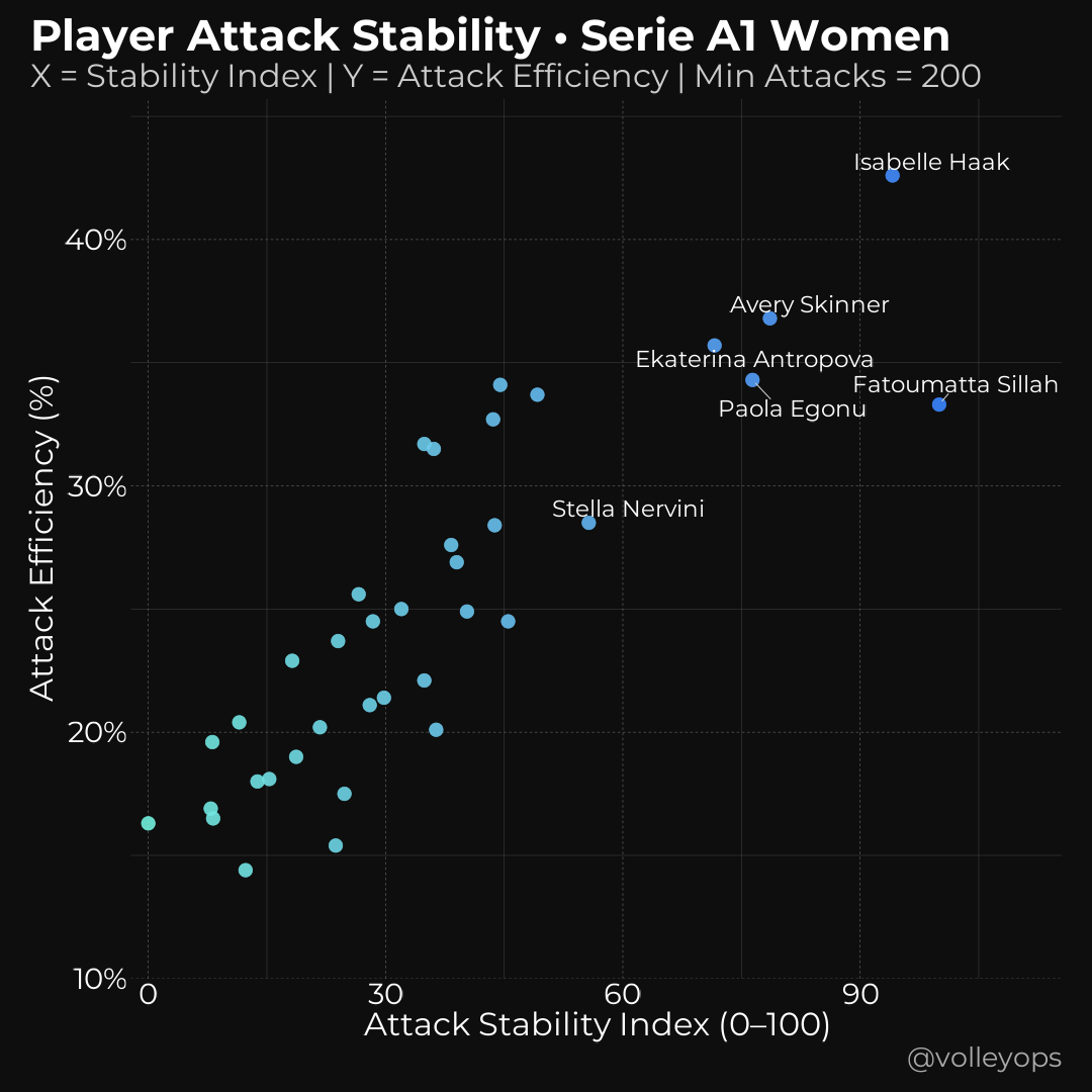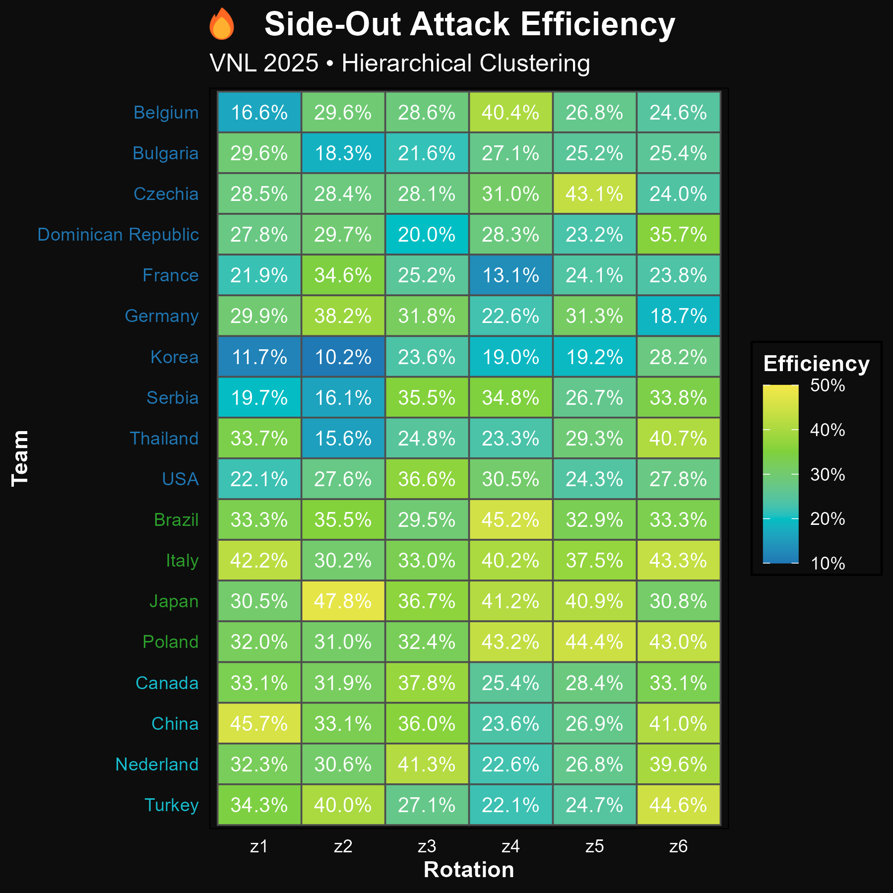Through @volleyops, I develop modern analysis methods, advanced statistical techniques, and high-quality visualizations to support athletes, coaches, and performance staff.